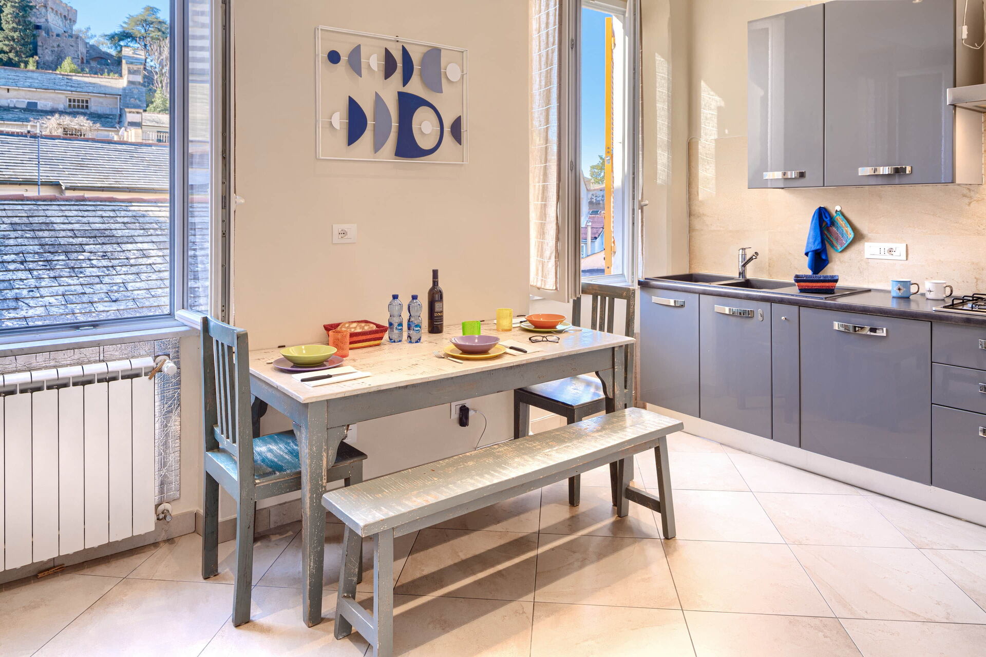 With two bedrooms, one bathroom, well-equipped kitchen, living room with small balcony and panoramic view over the old town.