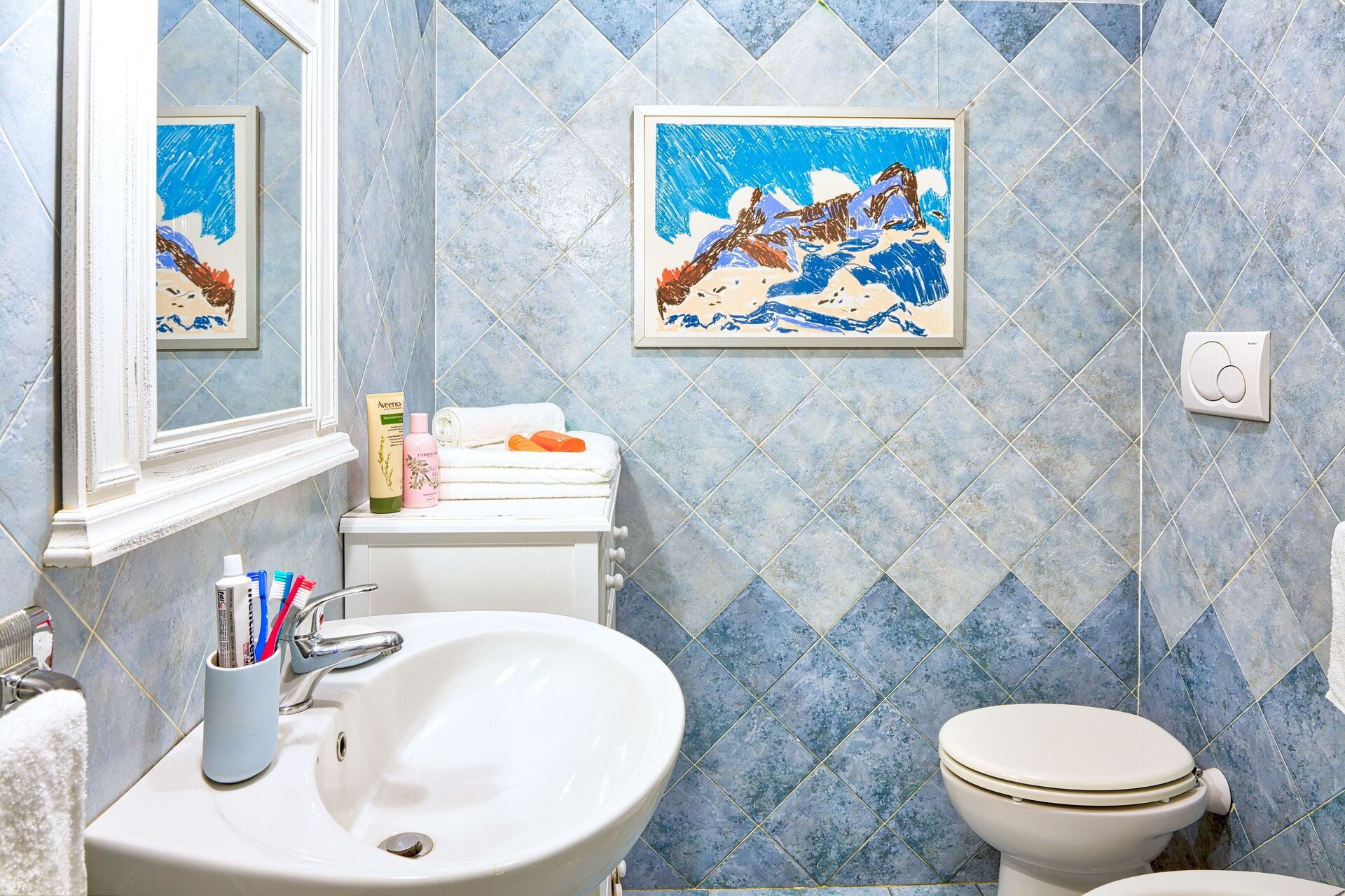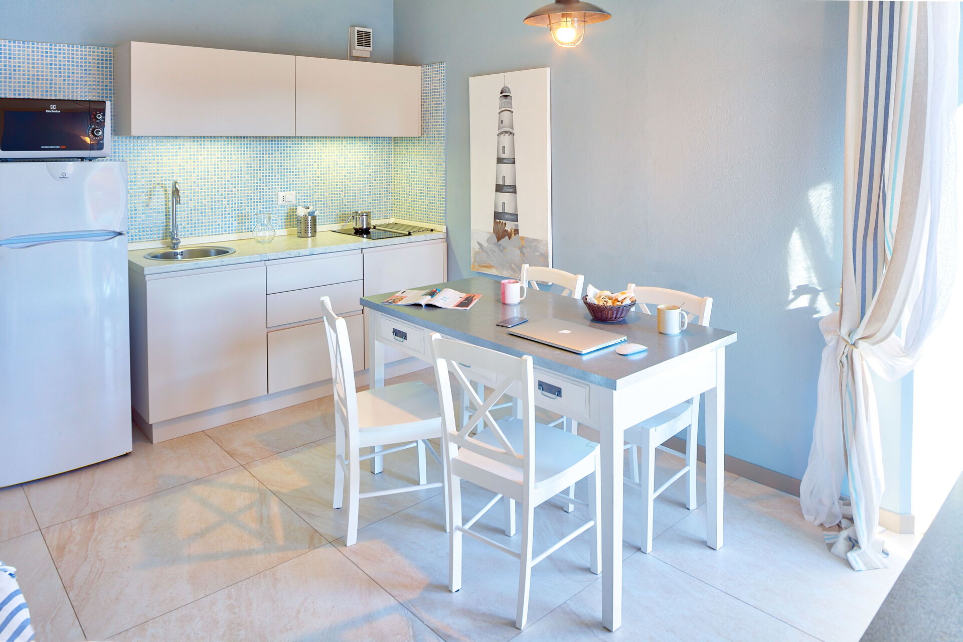 This vacation apartment, on the second floor, has a fantastic sea-view terrace, ideal for having breakfast in the morning and for romantic candle-lit dinners.