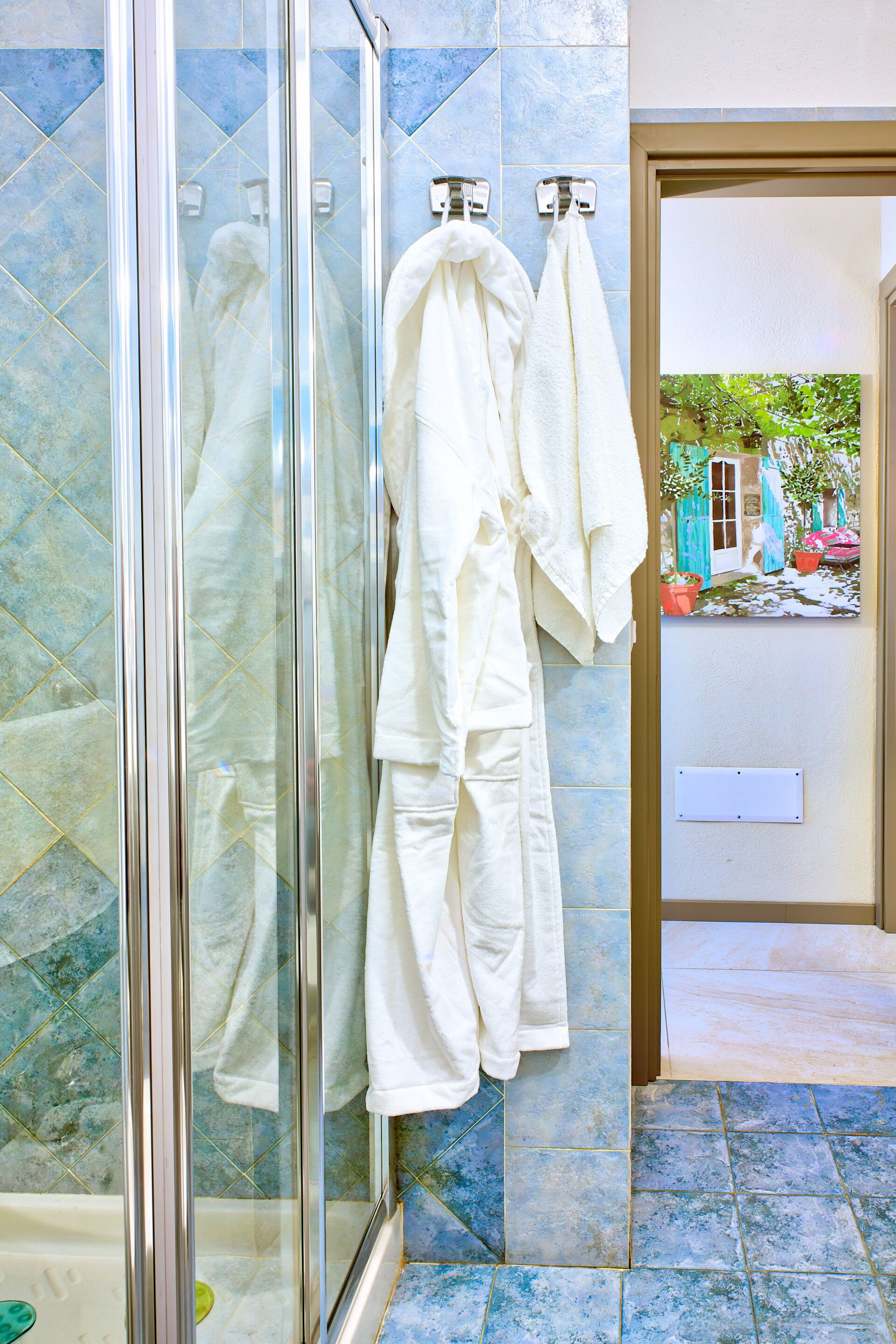 1 bathroom, with shower and hair dryer.