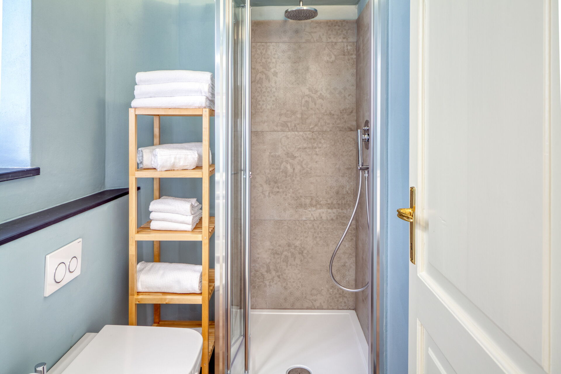 Bathroom with shower.