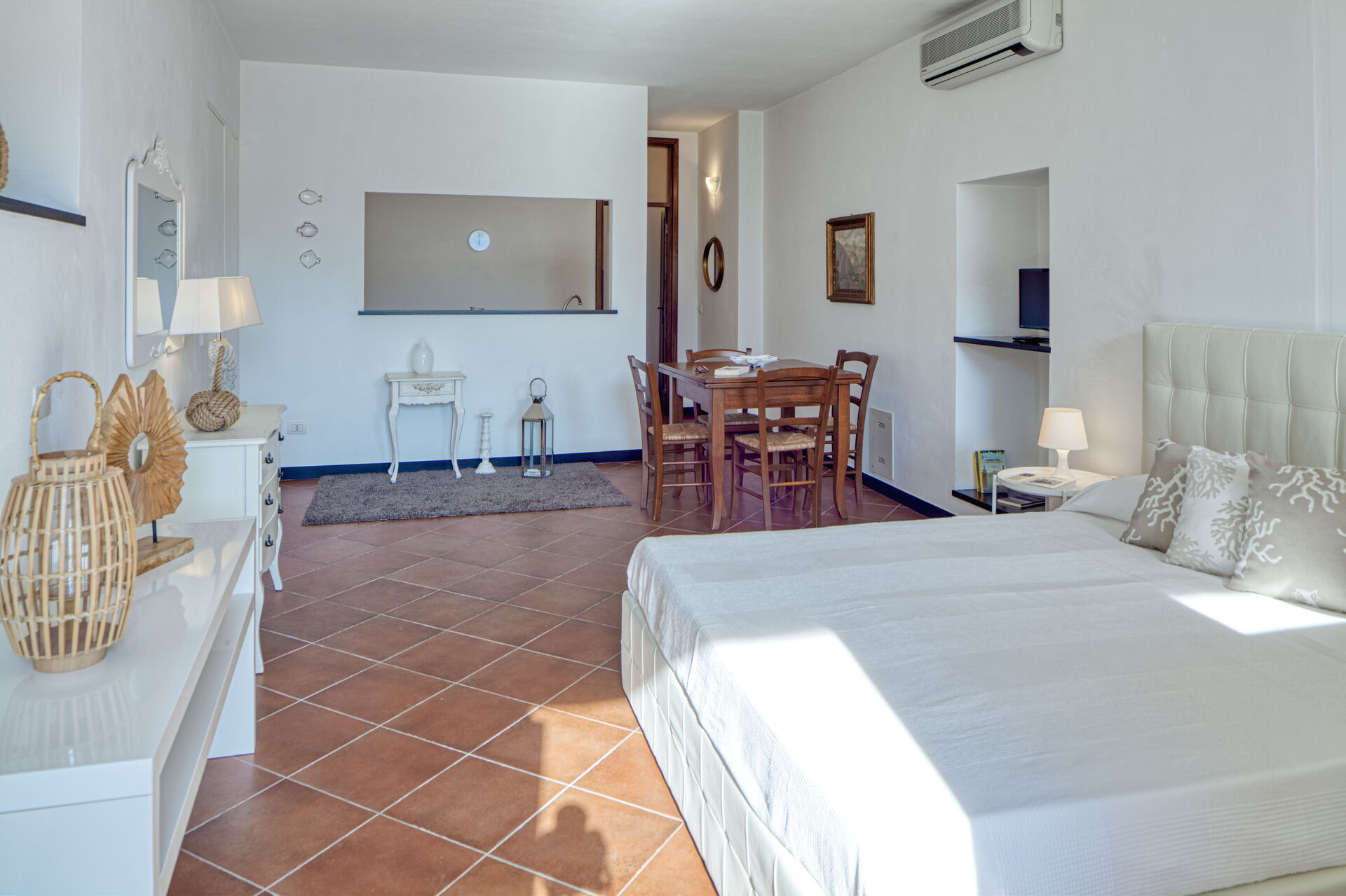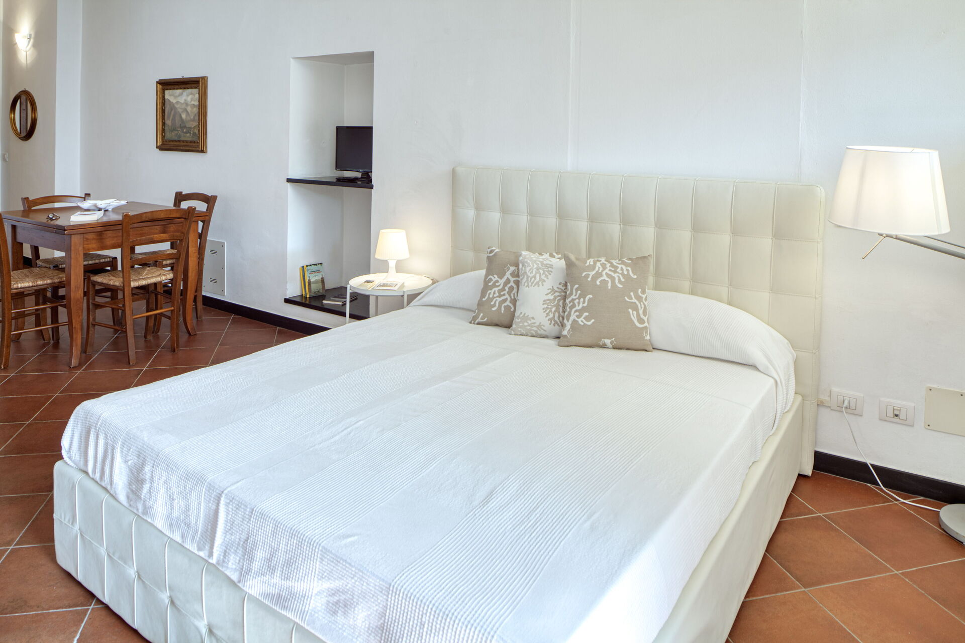 L'appartement est composé d'un espace ouvert, avec chambre à coucher avec lit double, coin cuisine équipée avec évier, plaques de cuisson, four, réfrigérateur, lave-vaisselle ; salle de bain avec douche.