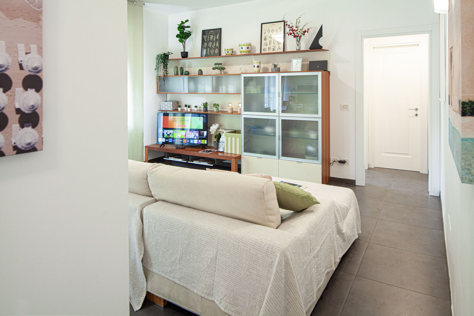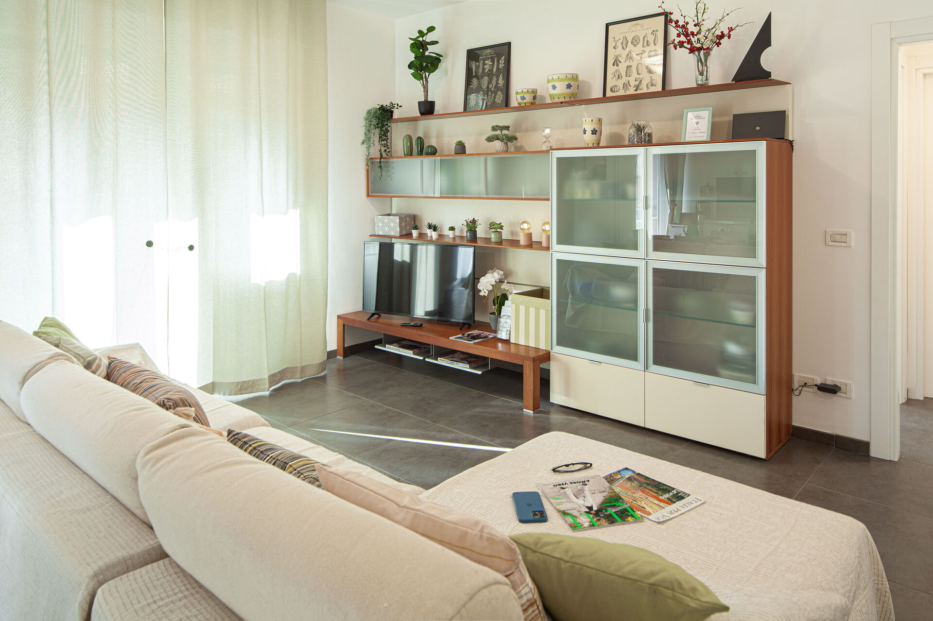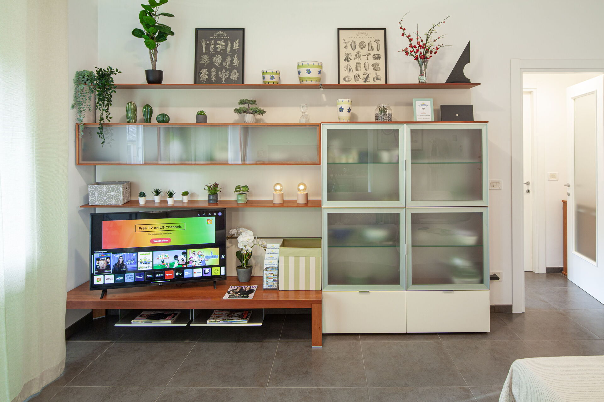 Wi-Fi rapide, Smart-TV 4K 43 pouces, chaînes de télévision par satellite : chaînes italiennes en HD (TivùSat) et les principales chaînes internationales gratuites (depuis le satellite Astra).