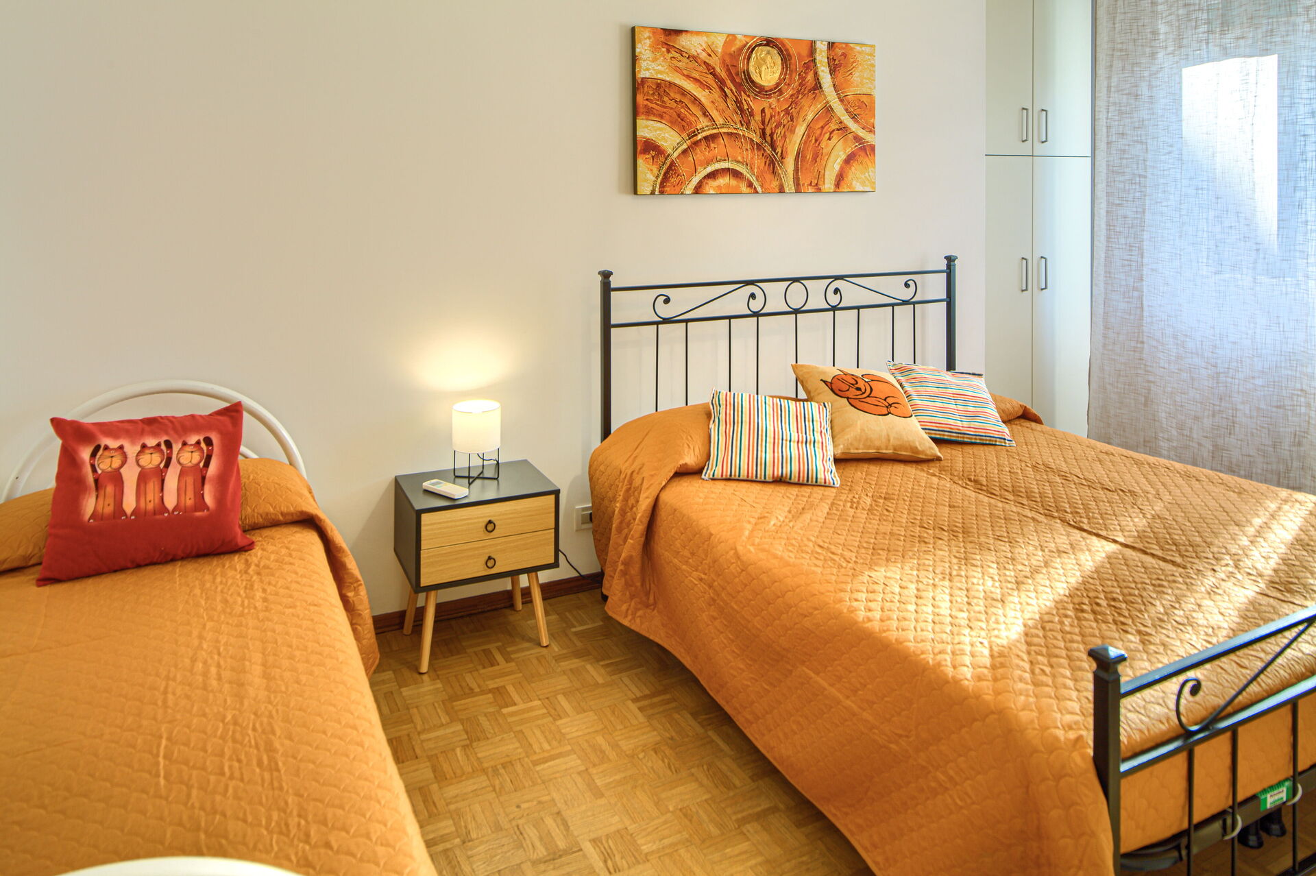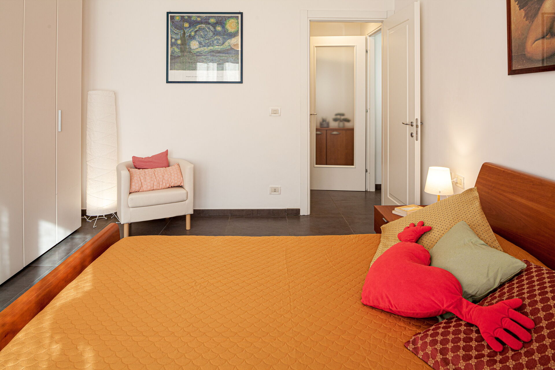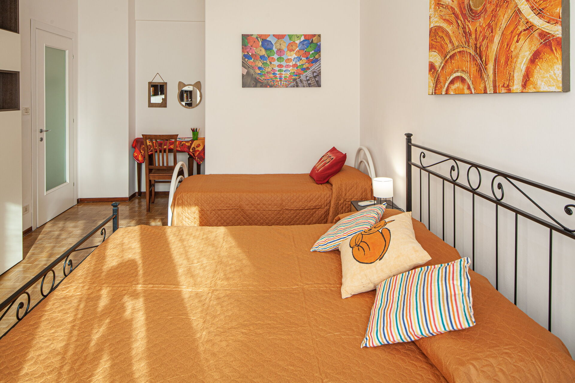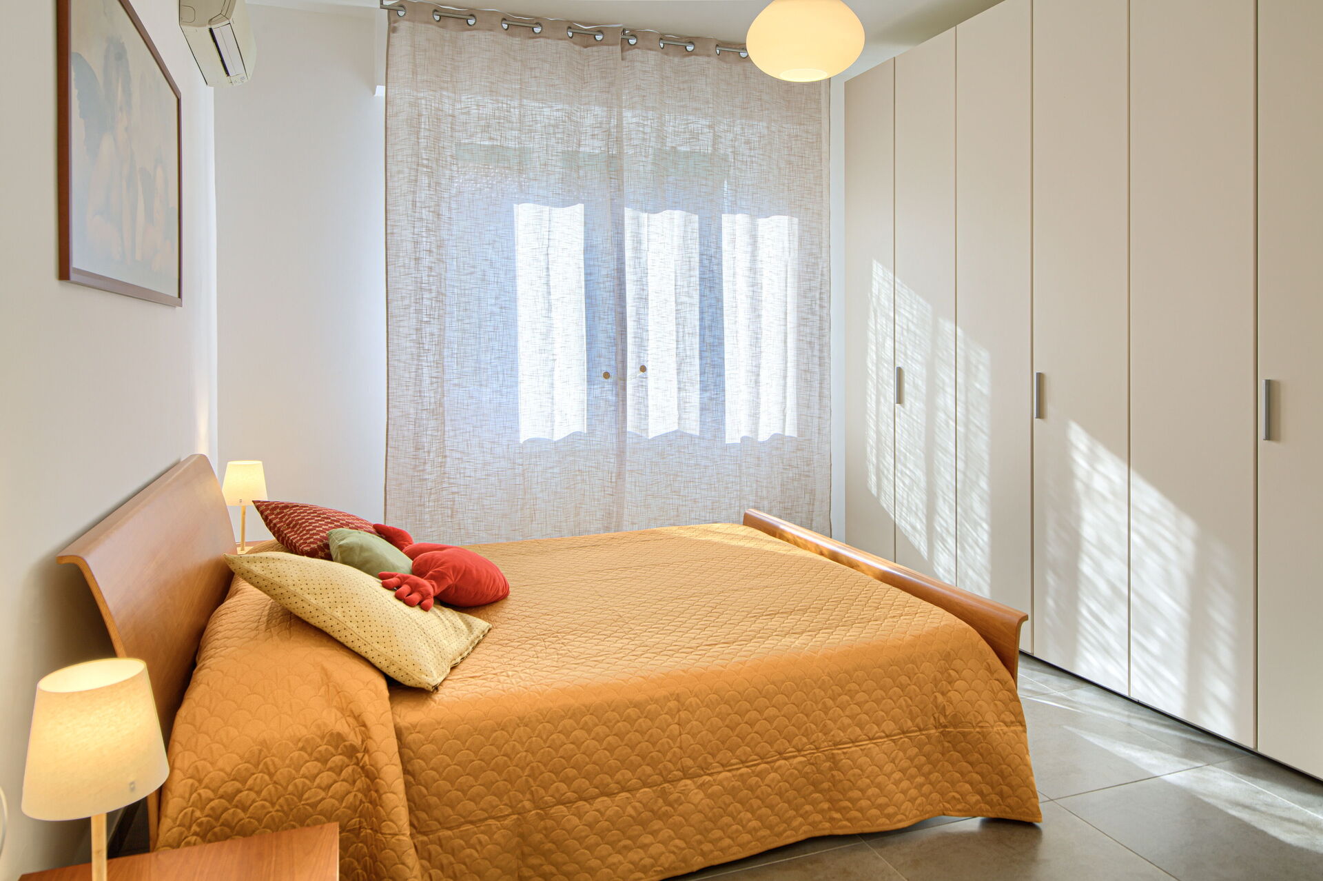 L'appartement Serena est composé de deux chambres : une avec un lit double, une avec un lit double et un lit simple. Les deux chambres sont équipées de la climatisation.