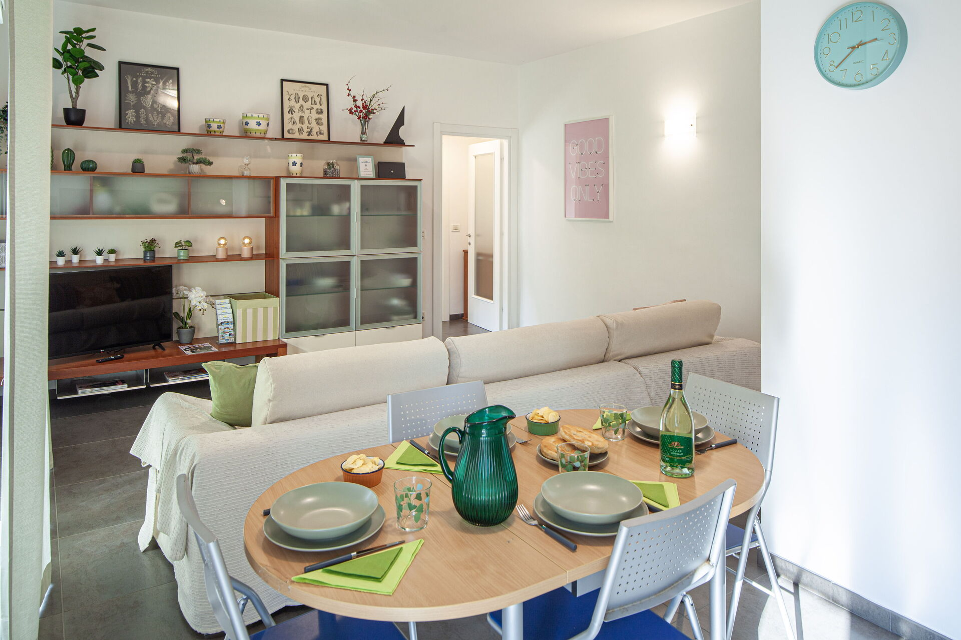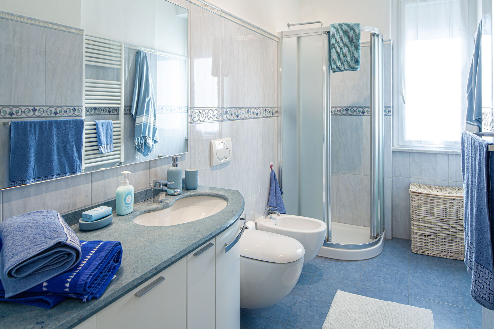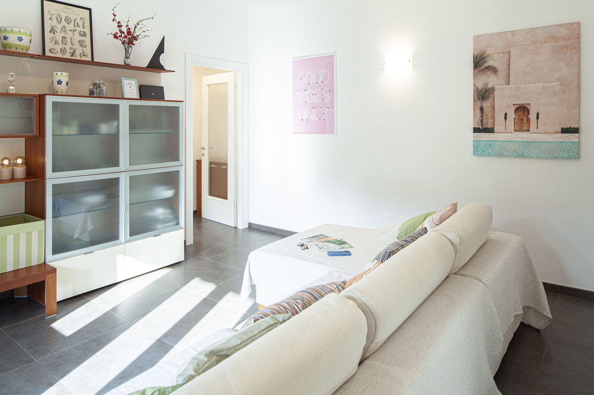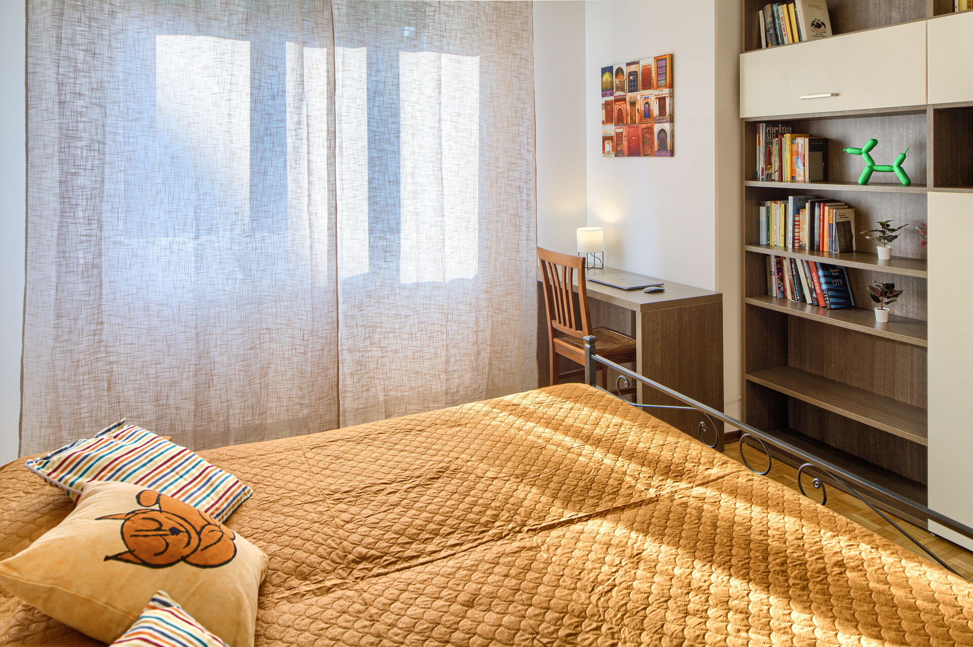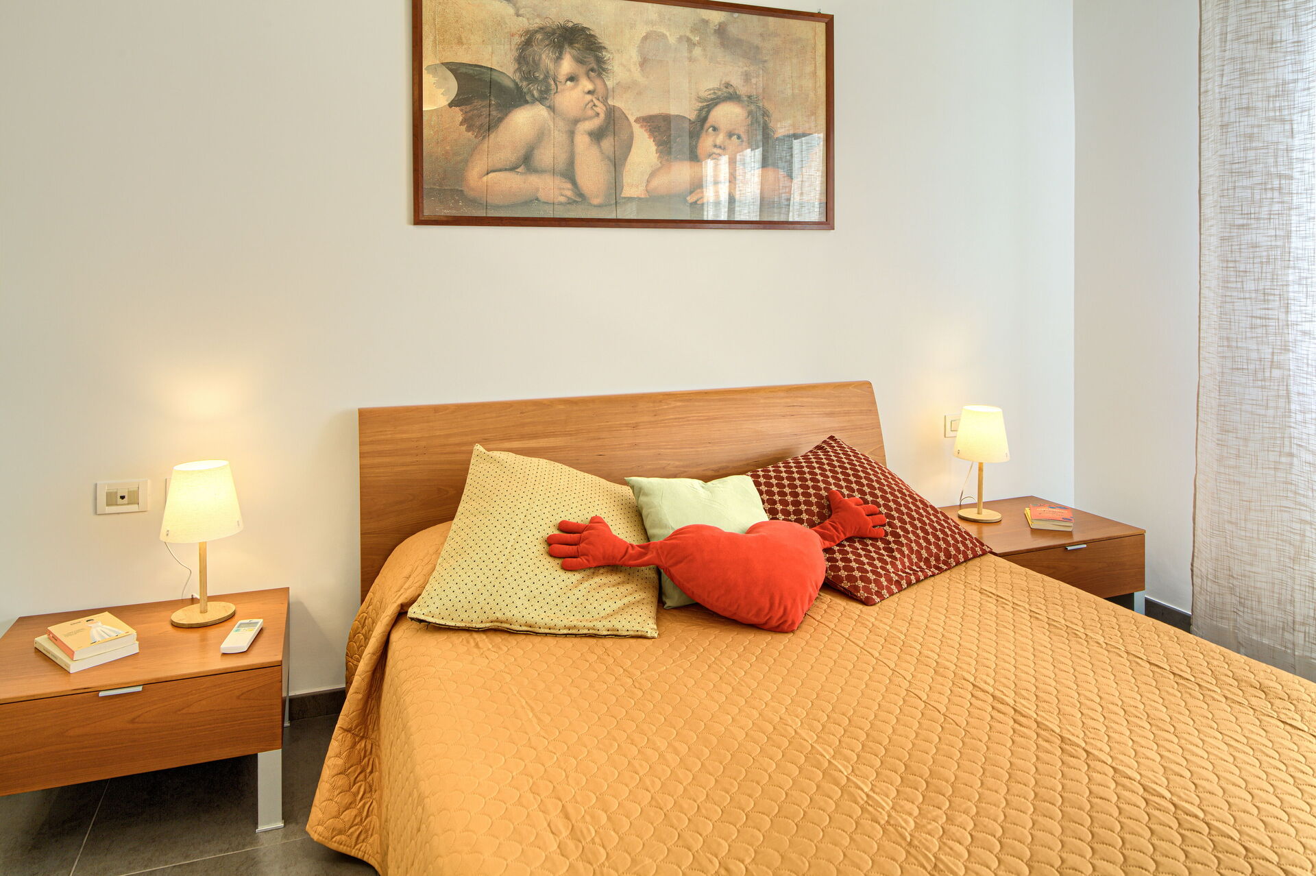 L'appartement Serena est composé de deux chambres : une avec un lit double, une avec un lit double et un lit simple. Les deux chambres sont équipées de la climatisation.